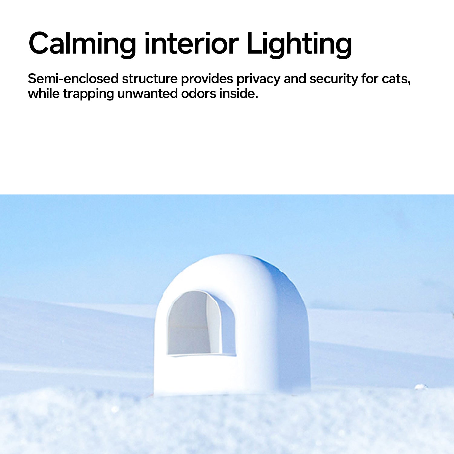 Semi-enclosed structure provides privacy and security for cats, while trapping unwanted odors inside.